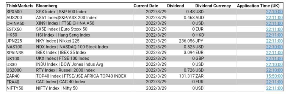 ThinkMarkets智汇平台CFD股指3月29日股息结算明细